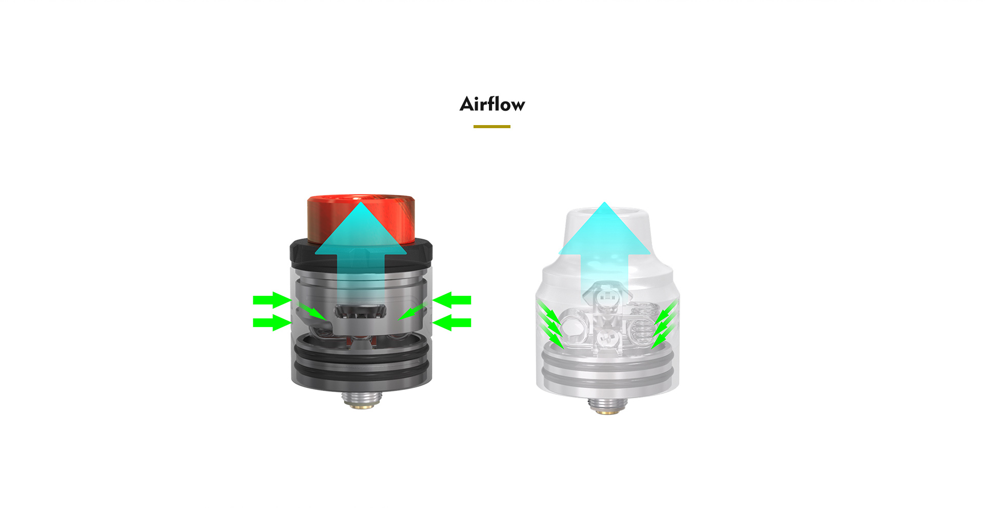 Le flux d'air est réglable et les prises d'air sont inclinés afin d'optimiser le rendu de saveur.