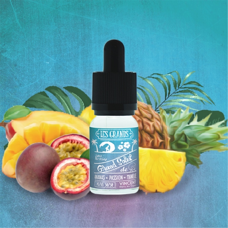 L’association ananas, mangue, passion et la pointe de fraîcheur de cet e-liquide donne aux jours de Grand Soleil un petit goût de caraïbes.