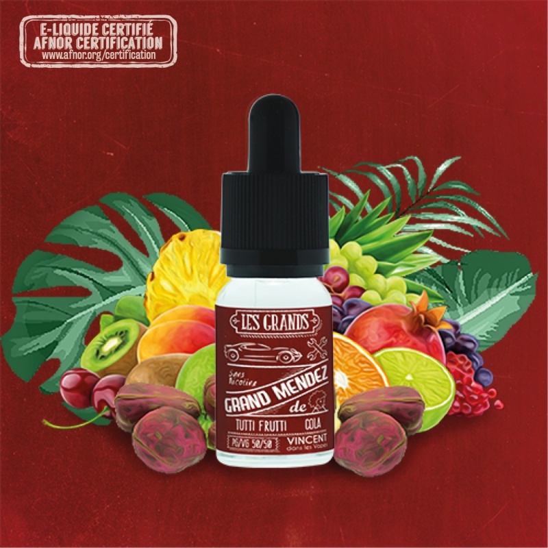 Attention les yeux ! Place au GRAND MENDEZ, celui capable de s’attaquer à la pipe d’admission de l’Aston Martin de James Bond en vapant un cocktail de fruits dynamité par l’acidité de la framboise et d’une pointe de cola !
